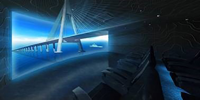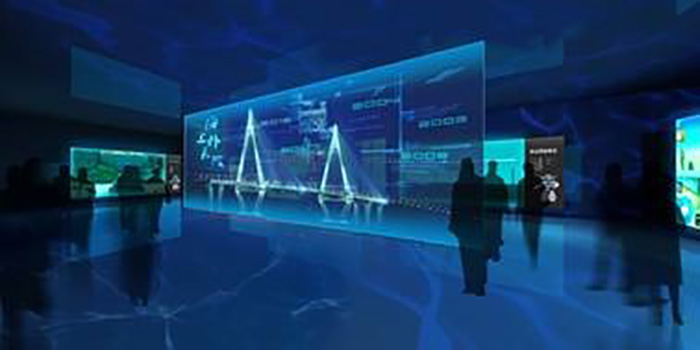 展館本身的布展則分為序廳,千年一越——夢想?yún)R聚之地,驚世之作——大橋設(shè)計營造,長虹臥波——大橋價值影響等四個展區(qū),分別從大橋背景,籌建,設(shè)計,營造,管理,價值影響等方面進行了全面展示和生動體驗,設(shè)置了創(chuàng)新技術(shù)——大橋模型結(jié)合透明屏綜合演示、海上臥長波——沉浸式互動主題影像秀、飛越千年——3D影院等眾多特色展項。